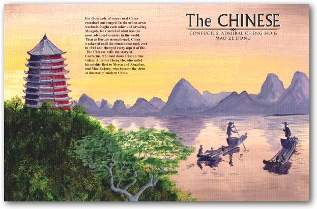 THE CHINESEFor thousands of years rural China remained unchanged. In the urban areas warlords fought each other and invading Mongols, for control of what was the most advanced country in the world. Then as Europe strengthened, China weakened until the communists took over in 1949 and changed every aspect of life. “The Chinese” tells the story of Confucius, who laid down China’s true values, Admiral Cheng Ho, who sailed his mighty fleet to Mecca and Zanzibar, and Mao Zedong, who became the virtual dictator of modern China.